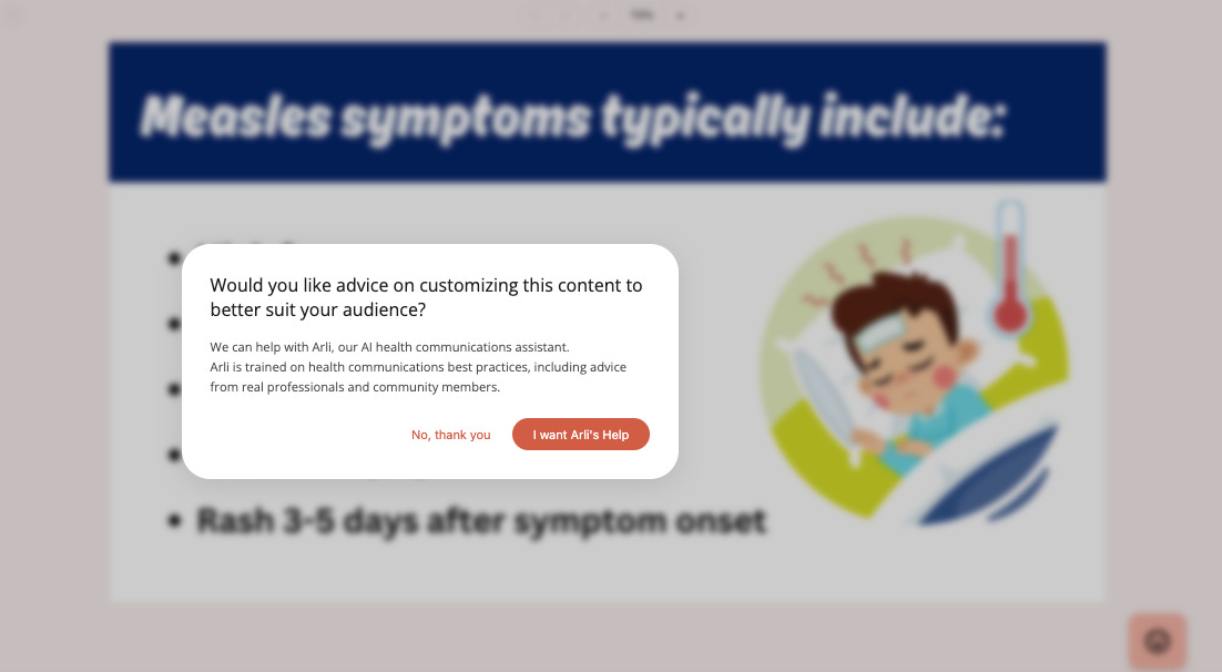 Imagine this. Measles is suddenly spreading in your town. You work at a health department or hospital, and you need to let people know how to protect themselves. But you don’t have the resources to launch a fully developed campaign or hire a marketing agency to create assets. So you have to figure it out yourself.